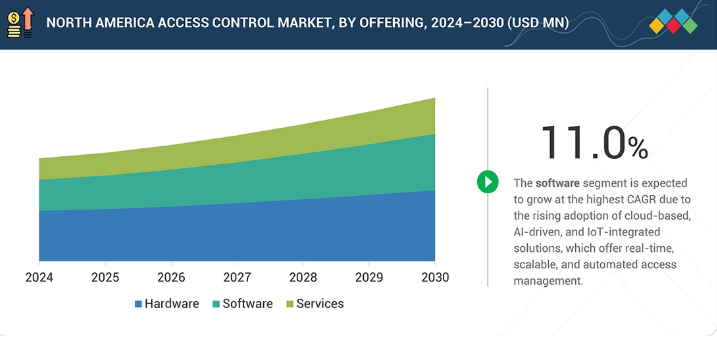 北米アクセス制御市場、提供形態別(市場規模と2030年までの予測 – 百万米ドル)