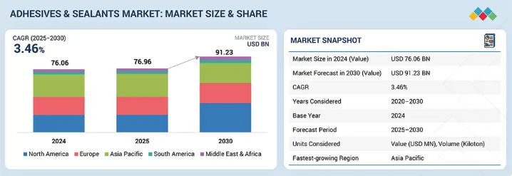 接着剤&シーラントの世界市場規模は2030年までにCAGR 3.46%で拡大する見通し