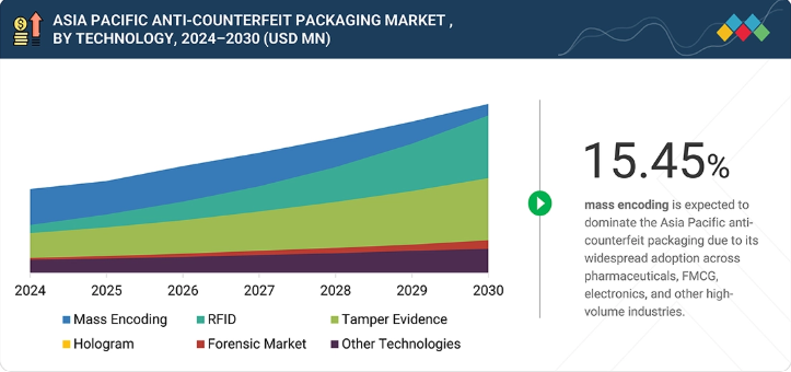アジア太平洋地域の偽造防止包装市場、技術別 – (市場規模と2030年までの予測 – 価値、百万米ドル、数量、10億単位)