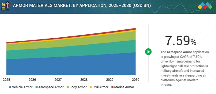 2025年から2030年にかけて、防護材料市場は大きく成長すると予測されています。この増加傾向の主な原動力は、軍隊における人員と車両の生存性を高める必要性です。従来の鋼鉄製装甲は効果的ですが、重量がかなり増加するため、燃費、積載量、機動性に影響を与える可能性があります。対照的に、高度な装甲材料は、軽量でありながら、保護と性能の優れた組み合わせを提供します。これらの材料は、モジュール式装甲パッケージ、スポールライナー、構造部品に利用されています。これらの材料は、多段ヒット耐性を提供し、爆発の影響を緩和することにより、運用環境の安全性を高めます。