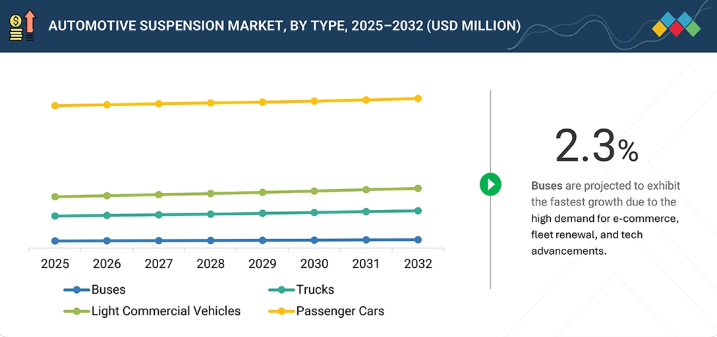 乗用車におけるマクファーソンストラットの使用が市場を牽引する要因となる。