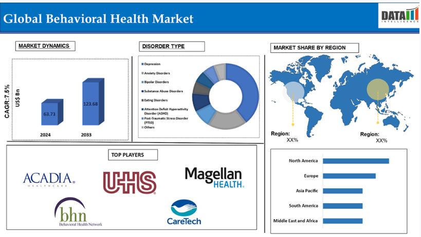DataM Intelligence社のレポートによると、世界の行動衛生市場は2024年に637億3,000万米ドルに達し、2033年には1,236億8,000万米ドルに達すると予測され、予測期間2025-2033年のCAGRは7.5%で成長する見込みです。