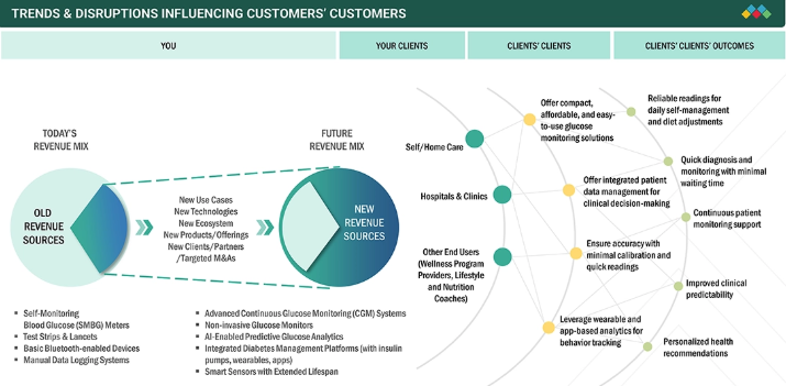 血糖値モニター市場は、従来の血糖測定器やストリップベースの検査から、先進的な技術主導型ソリューションへの移行を経験している。新たなトレンドとしては、持続血糖モニタリング(CGM)システム、非侵襲的・低侵襲的センサー、スマート接続デバイス、AIを活用した分析技術の採用が挙げられる。リアルタイムモニタリング、精度向上、糖尿病管理強化への需要に後押しされ、これらの革新は高成長機会を創出している。病院、診療所、在宅患者といったエンドユーザーがこうした破壊的技術を積極的に採用し、糖尿病ケアの未来を再構築しつつある。