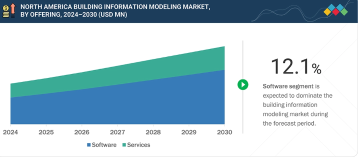 北米BIM市場、提供内容別(市場規模と2030年までの予測 – 10億米ドル)