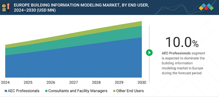欧州のビルディング・インフォメーション・モデリング(BIM)市場、エンドユーザー別(市場規模と2030年までの予測 – 10億米ドル)