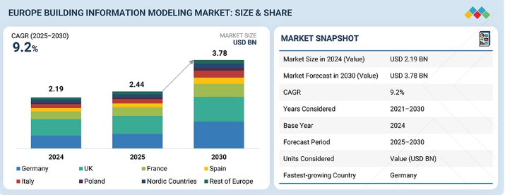 ビルディング・インフォメーション・モデリングのヨーロッパ市場規模は2030年までにCAGR 9.2%で拡大する見通し
