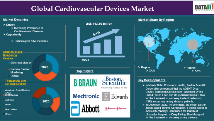 世界の心血管デバイス市場は、診断・モニタリングデバイス、治療・外科用デバイス、用途、エンドユーザー、地域に基づいてセグメント化されている。