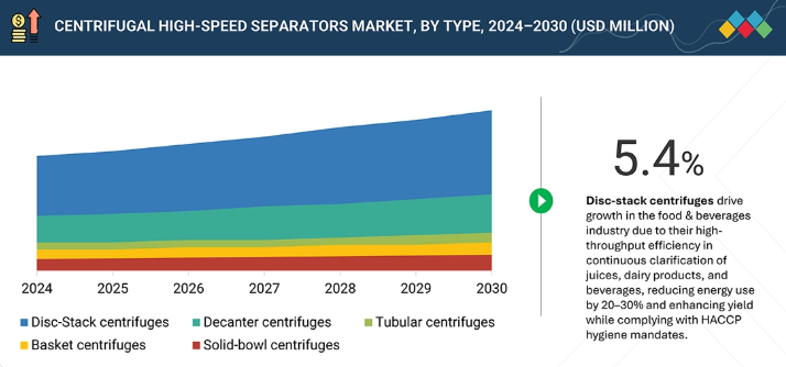 タイプ別では、ディスクスタック型遠心分離機が予測期間中に5.4%という最高CAGRを記録すると予想される。