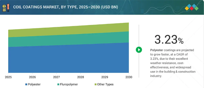 ポリエステルは耐候性、耐食性に優れ、費用対効果が高く、汎用性があり、建築、建設、家電産業で広く採用されているため、ポリエステル分野の成長が加速すると予測。