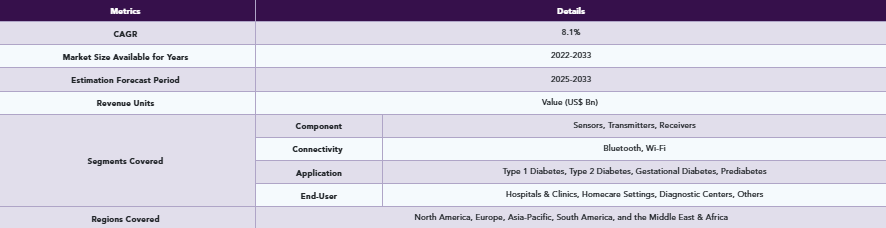 持続血糖モニタリングデバイスの世界市場規模は2033年までにCAGR 8.1%で拡大する見通し