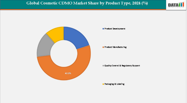 製品製造部門は化粧品CDMO市場の42.2%を占めると推定されます。