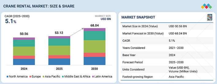 クレーンレンタルの世界市場規模は2030年までにCAGR 5.1%で拡大する見通し