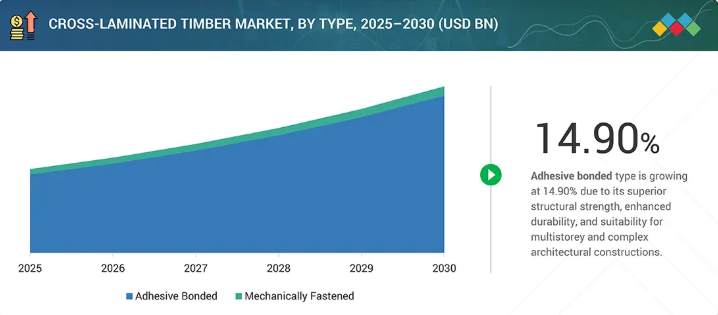 タイプ別では、優れた耐荷重性、設計の柔軟性、大規模な近代建設プロジェクトに適していることから、接着剤接着クロスラミネート材が最も速い成長率を示しています。