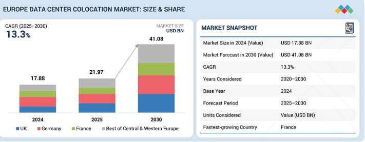 欧州のデータセンターコロケーション市場は、2025年の219億7000万米ドルから2030年までに410億8000万米ドルへ、年平均成長率(CAGR)13.3%で拡大すると予測される。この成長は、AIワークロードの導入増加、ハイパースケールクラウドリージョンの拡大、高密度電力インフラ、先進冷却システム、ハイブリッド企業アーキテクチャを支える相互接続豊富なキャンパスを反映している。