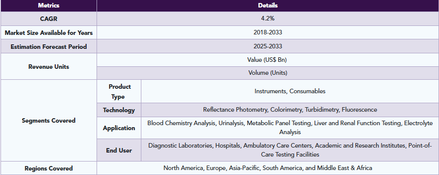 ドライケミストリー分析装置の世界市場規模は2033年までにCAGR 4.2%で拡大する見通し