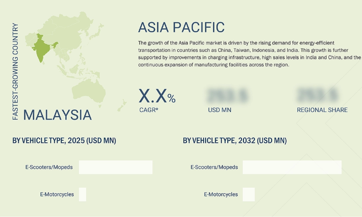 アジア太平洋地域の電動二輪車市場は、中国、台湾、ベトナム、インドなどの国々における手頃で効率的な交通手段への需要増加により成長している。電動二輪車は、電気料金の低さ、メンテナンス需要の減少、機械設計の簡素化により、ガソリンモデルに比べて最大70~80%のランニングコスト削減が可能である。また、多様な現地生産モデル、強力な政府支援策、充電・バッテリー交換インフラの急速な整備も成長を支えています。さらに、インドと中国における堅調な国内販売と製造施設の拡大が、同地域を電動二輪車の生産・イノベーションにおける世界的拠点として強化する一助となっています。
