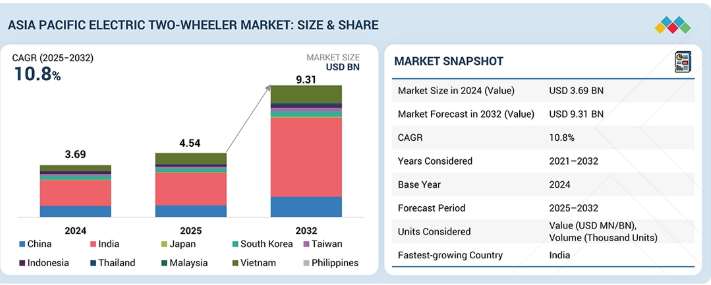 アジア太平洋地域の電動二輪車市場規模は2032年までにCAGR 10.8%で拡大する見通し