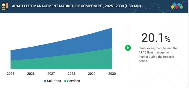 アジア太平洋地域におけるフリート管理市場、コンポーネント別(市場規模と2030年までの予測 – 価値ベース、百万米ドル)