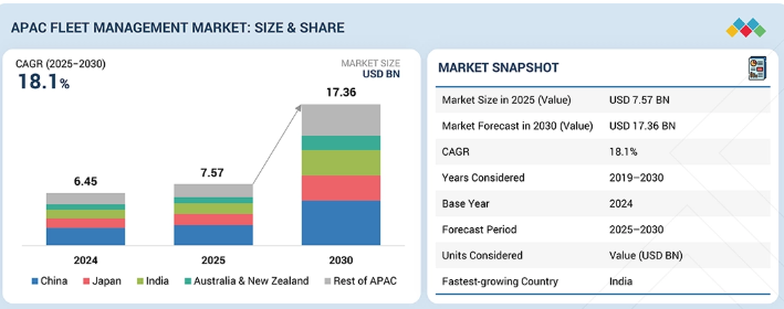 アジア太平洋地域のフリート管理市場は、2025年の75億7000万米ドルから2030年までに173億6000万米ドルへ、年平均成長率(CAGR)18.1%で成長すると予測されている。インドと中国における急速な都市化と人口増加が、アジア太平洋地域全体で物流サービスへの強い需要を牽引している。拡大する電子商取引活動は、高度なラストマイル配送とフリート調整ソリューションの必要性を高めている。スマートインフラや道路網への政府投資がテレマティクスの導入を加速させている一方、電気自動車移行を支援する地域規制により、専門的なフリート監視システムの需要が高まっている。