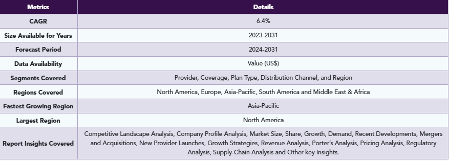世界の医療保険市場は、プロバイダー、保障内容、プランタイプ、流通チャネル、地域によって区分されます。