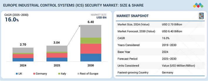 欧州のICSセキュリティ市場は、2025年の30億4000万米ドルから2030年までに64億米ドルに達すると予測されており、2025年から2030年までの年間平均成長率(CAGR)は16.0%となる見込みです。欧州全域で、各国政府は重要インフラ保護のため、より多くの資金を割り当て、より明確な規則を実施しています。各国のサイバーセキュリティ・レジリエンス計画には、電力網、交通システム、産業施設の保護に向けた専用予算が組み込まれている。これにより事業者は、信頼性維持と規制要件対応のため、ICSセキュリティツールへの投資をより着実に進めるよう促されている。