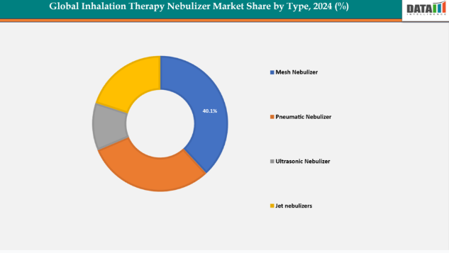 タイプ別では、メッシュ式ネブライザーが2024年に40.1%という最大の収益シェアで市場をセグメント化した。