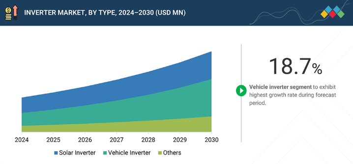 タイプ別では、2025年から2030年にかけて、車両用インバーターセグメントが最も高い成長率を示すと予測されています。