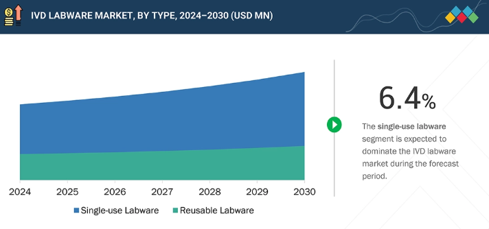 IVDラボウェア市場は、診断ワークフロー全体で信頼性の高い高品質な検査消耗品への需要増加により成長が見込まれる。主な要因としては、正確な検査の必要性を高める慢性疾患・感染症の発生率上昇、診断サービスへのアクセス拡大を可能にする発展途上地域における医療インフラの拡充、検査室の安全性と効率性を向上させるプラスチック製・使い捨て検査器具の採用拡大が挙げられる。さらに、診断検査室の増加と疾患早期発見に対する患者の意識向上も、市場の着実な拡大に寄与している。