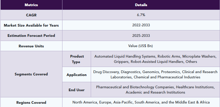 実験室用ロボットの世界市場規模は2033年までにCAGR 6.7%で拡大する見通し