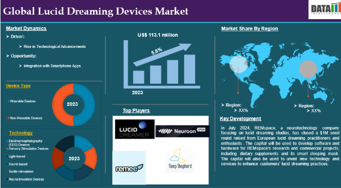 DataM Intelligenceのレポートによると、世界の明晰夢デバイス市場は2023年に1億1,310万米ドルに達し、2033年までに2億180万米ドルに達すると予想されています。2025年から2033年の予測期間中は、年平均成長率(CAGR)5.8%で成長すると見込まれています。