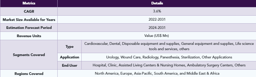 医療用品&医療機器の世界市場規模は2031年までにCAGR 3.6%で拡大する見通し