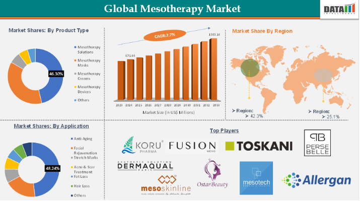 メソセラピー市場の主要なグローバル企業には、Koru Pharma Co., Ltd.、Fusion Meso、Toskani Cosmetics、Persebelle、Dermaqual、Mesoskinline、OstarBeauty、Mesotech S.r.l.、Allergan、Restylaneなどが挙げられます。