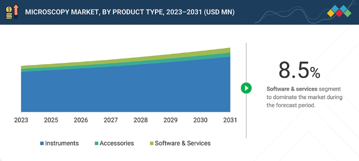 顕微鏡市場、製品別(市場規模と2031年までの予測-金額ベース、百万米ドル)