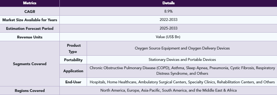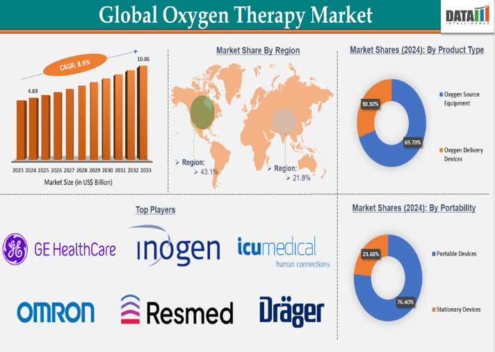 酸素療法の世界市場規模は2033年までにCAGR 8.9%で拡大する見通し