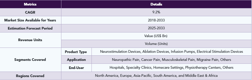 世界の疼痛管理デバイス市場(2025 – 2033):製品種類別、用途別、エンドユーザー別、地域別分析レポート
