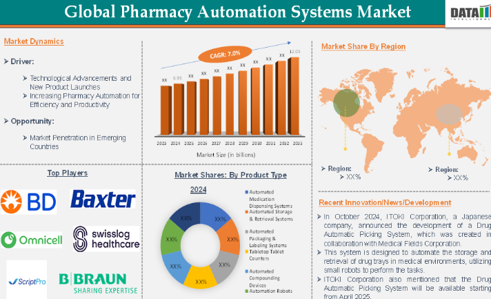 薬局自動化システム市場の主な世界的プレーヤーには、BD、Omnicell、Swisslog Healthcare、ScriptPro、ARxIUM、B. Braun Medical Inc.、Baxter、ICU Medical, Inc.、Capsa Healthcare、Pearson Medical Technologies、Willach Groupなどがあります。