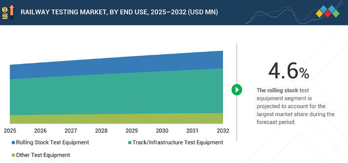 鉄道試験・軌道測定機器市場、エンドユース別(市場規模と2032年までの予測 – 価値ベース、百万米ドル)