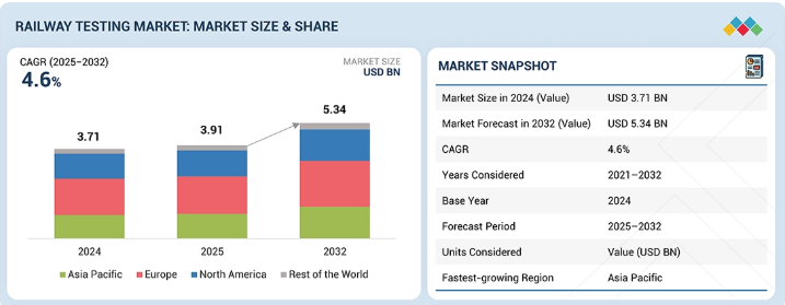 鉄道試験市場は、2025年の39億1000万米ドルから2032年までに53億4000万米ドルへ、年平均成長率(CAGR)4.6%で成長すると予測されている。鉄道事業者がデータに基づく保守プログラムへ移行する動きは、軌道形状、架線システム、信号設備、車両に対する精密かつ高頻度の検査需要を促進し、市場の成長を牽引している。さらに、鉄道の安全性・信頼性基準の向上により、継続的監視をサポートする先進的試験プラットフォームの必要性が高まっている。加えて、重量貨物輸送や貨物輸送回廊開発の需要増加がネットワーク資産への負荷増大をもたらし、事業者には故障を早期に検知し運行障害を低減できる機器の導入が迫られている。