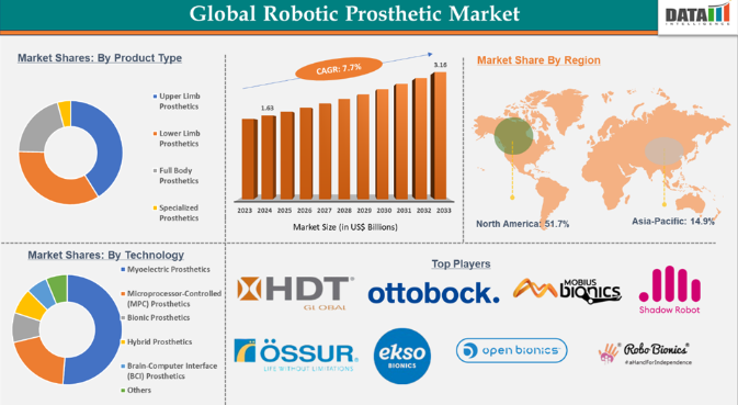 ロボット義肢市場の主要グローバルプレイヤーには、HDT GLOBAL、Ottobock、Robo Bionics、Shadow Robot Company、Ossur Americas、Ekso Bionics、Mobius Bionics、Open Bionics、Fillauer LLC、Myomo Inc.などが含まれる。