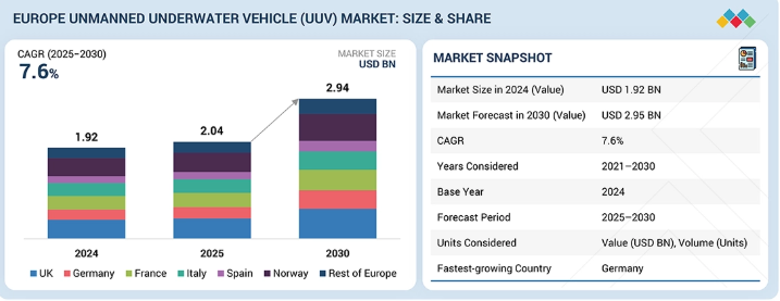 ヨーロッパの無人水中車両市場規模は2030年までにCAGR 7.6%で拡大する見通し